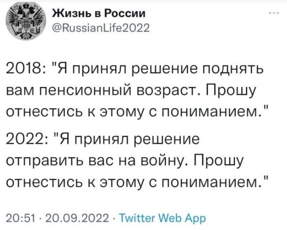 вот такой вот нож в Ж*пу от путина мобилизованным… теперь 1000 раз подумать и придумать 1 способ послать все это наХ