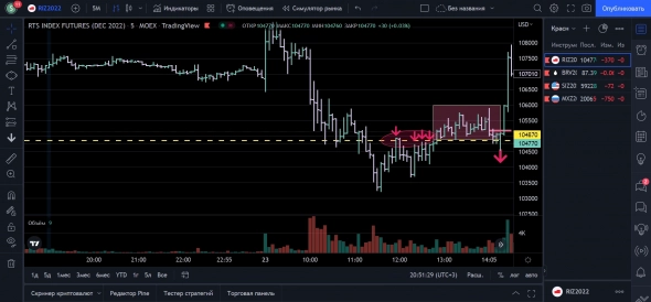 День с утра не задался. Но так к дневному клирингу в общем то выровнял баланс, и рассчитывал взять хороший движ. Заходил повышенным объёмом в пробой ключевого уровня — точки верчения., Прям добавился туда же. Однако как показывает практика торговать подобныйм образом нельзя на таком волатильном рынке. У меня даже стоп-лосс в стакане выставлен не был автоматический. С экспирации ещё, торговал от экстремумов без всяких там пробоев .