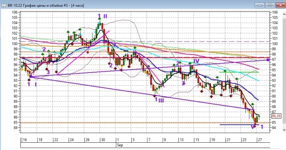 Брент все снижается и близок к зоне возможного разворота 83-84.