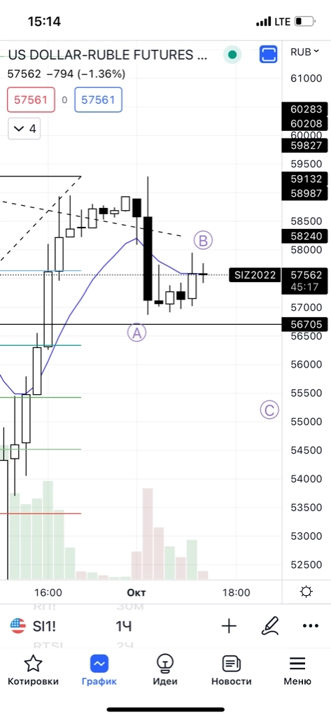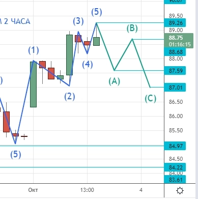 Возможно от верхов пятницы мы таки нарисовали АВС, где внутри С малая 5волновка.