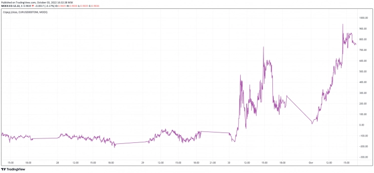 В итоге мы получаем колоссальную раскорреляцию курсов доллара и евро на мосбирже
