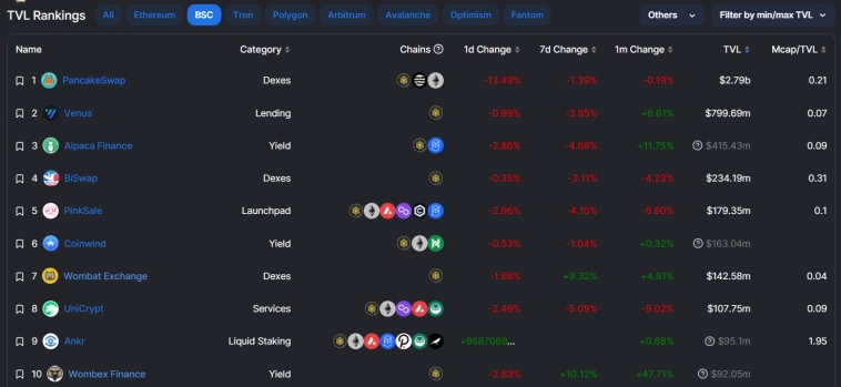 d_d, в BSC доминирует PancakeSwap (децентрализованная биржа) и Venus (протокол для лендинга). Соответственно, фарминг ликвидности + платформа для займов. Я сам пользовался и тем и тем, довольно популярная штука.