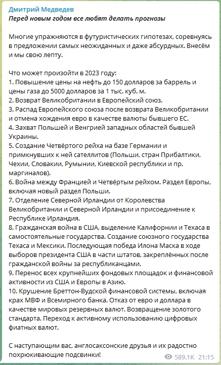 Дмитрий Принудитель сегодня явно в ударе. Выложу в комментах его сегодняшний пост в Телеграме. Прогнозы такие, что мурашки по коже.