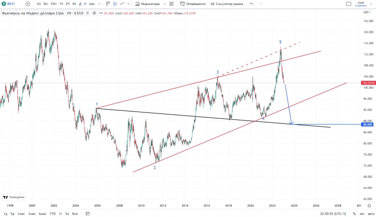 Gella, индекс доллар неделькин, недельный Вульф, он Вам не Димон Эллиот. Всё очень серьёзно. Минимальный ТП. Дальше больше.