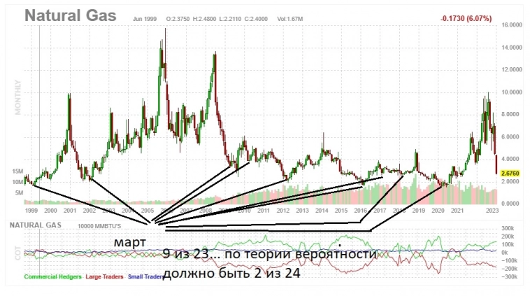 Фьючерс на газ я добавил в инструменты с месяц назад. Предполагал, что дно где-то рядом. Но нет, снижение методично и неумолимо продолжается. Иногда перейдёшь на таймфрейм меньше дня, увидишь на двух- или четырёхчасовике какие-то заманухи и давай облизываться и одновременно лупить себя по рукам, чтоб неповадно было лезть поперед батьки в пекло в лонг до появления внятных сигналов. Мне вот интересно- лонгисты ещё остались в нём? Каких уровней кто ждёт? Предположу, что разворот может состояться после фазы ускорения снижения, когда отмаржинколят самых упоротых и стойких бычар. Неужели на -37$ ??)
