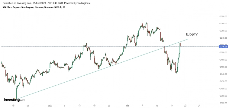 21.02.2023. Вчера индекс ММВБ закрыл день еще одной белой свечкой, удержав ближайшую поддержку на 2140 и закрывшись выше ближайшего локального сопротивления (на утро 2175), однако не оттестил его сверху (на вечёрке оттестил, правда). Занятно, что основной индекс обновил лой 17.02, нарисовав импульс с хая 07.02, что предполагает возобновление снижения после отскока с ближайшими целями в виде дневных поддержек на 2094 и 2086. В то же время ММВБ2 аналогичных лоёв не обновил и там по прежнему с хаёв АВС, что предполагает продолжение роста. Какой сценарий победит — узнаем сегодня, думаю. Вполне возможно, что победят оба по очереди. А пока уточнения не появились, будем исходить из того, что снижение продолжится, а для лонгов ждать разворотных сигналов, которыми будут тест сверху 2175 и пробой с ретестом локальных сопротивлений в виде кластерной зоны 2203-2210 и до кучи — отметки 2228.