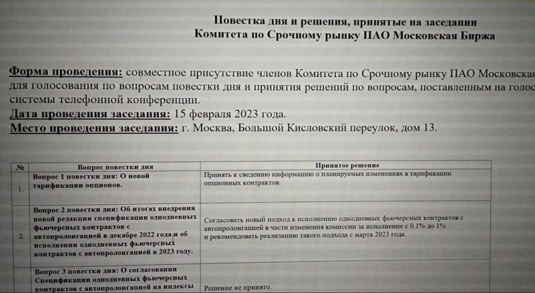 Sergio Fedosoni, в телеге биржи по деривативам ни слова про увеличение комиса на исполнении в 10 раз, зато 16-Февраля пишут какие замечательные арбитражные возможности открылись на вечном))
