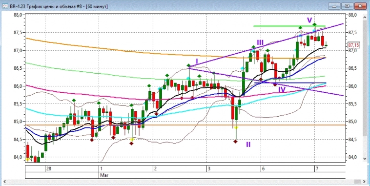 Нефть снова закрыла день выше недельной поддержки 85,35, пока ждём теста уровня сверху для продолжения роста: отбой покупаем с ближайшими целями 88,28 и 89,74; пробой с ретестом шортим с ближайшими целями 84,05 и 81,04.