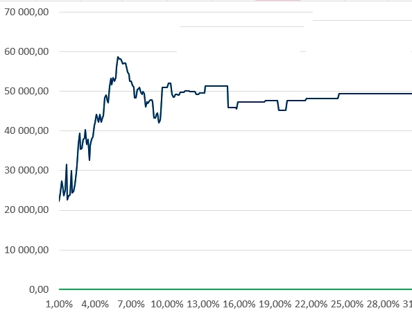На рисунке пример тестирования выигрывающей стратегии по размеру стопа.