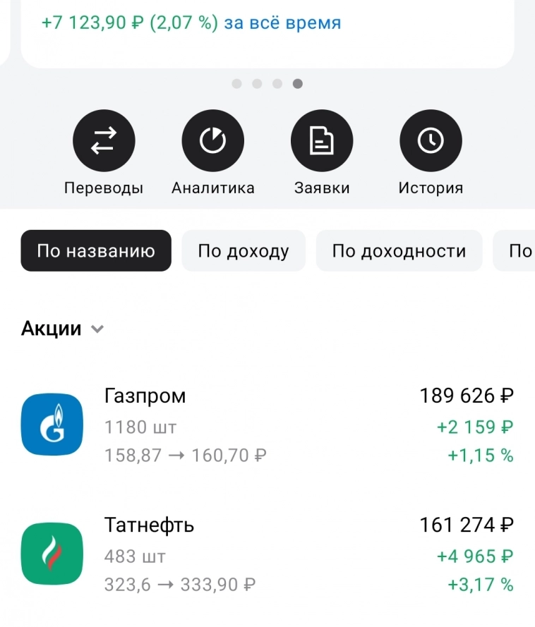 А вот в основном не продал, так как в убыток не продаю. Просто на ИИС вход был лучше и продал в легкую прибыль. Пошел на дивы в Газпроме средняя уменьшилась ессно. На дивы снова купил и разбавил Газпром еще снизив среднюю она район 180-190 сейчас.