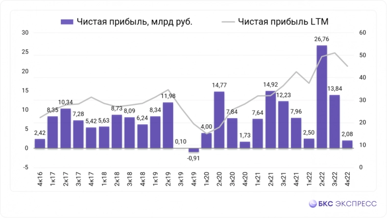 Чистая прибыль 45.2 млрд руб (+5.7% г/г)
