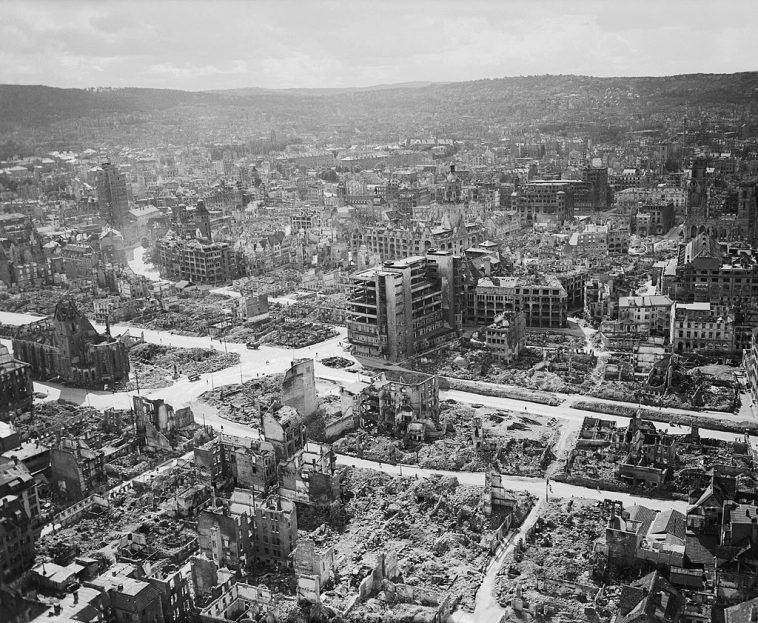 Опять же в Западной Германии почти не было боев, а в Восточной СССР отвоевывал чуть ли не каждый клочек земли, так что там и без западных бомбардировок многое было уничтожено в ходе боев.