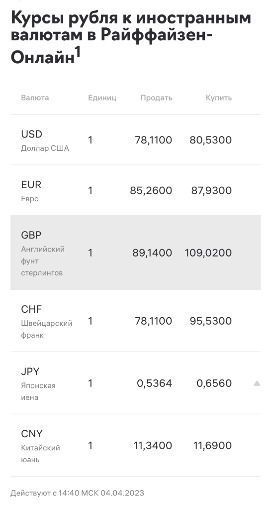 Но сегодня в Райффайзене аномалия с курсами валют. Взгляните сами. Спред между покупкой и продаже всего 61 копейка. А купить через банк (мгновенно) можно за 79.71, тогда как на бирже 79.37 + 1.9% комиссии (около +1,5 рубля). Получается, что через банк даже дешевле покупать!