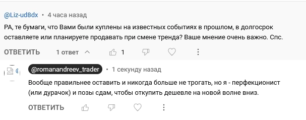 Ну… либо заканчивать СВО. В случае последнего очень стрёмно уходить на выходные без позиций (это я не про сегодня, а вообще), ибо новость такого масштаба просто переставит рынок на истхаи, результатом чего станет появление нового профсоюза обманутых трейдеров-шортистов, который будет заваливать окрестные суды жалобами на очередное бесчинство маклеров ММВБ, на этот раз не остановивших торги.