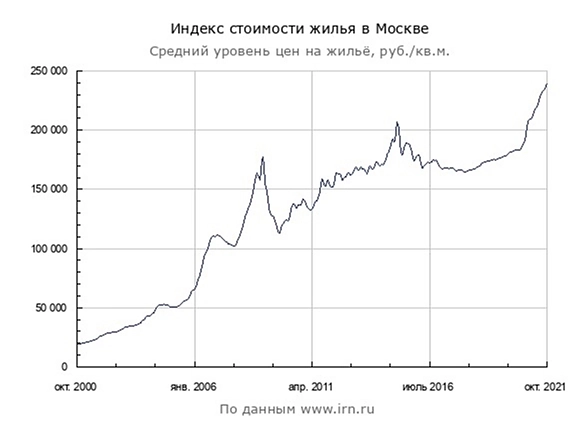 Предложение на хаях, а динамика цен московских новостроек в настоящих деньгах выглядит так: