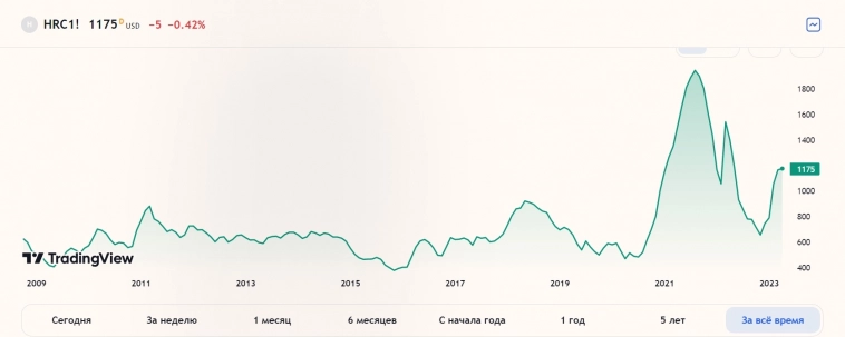 А вот это как объяснить. Фьючерсы на рулонную сталь взлетели в 2021 году, накануне войны: