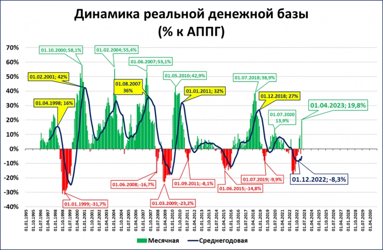 Сокращение реальной денежной массы началось в феврале 2022 года и продолжается уже 13 месяцев.