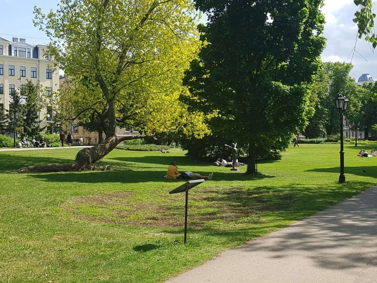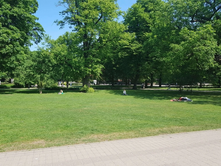 Народ на травке валяется, отдыхает-балдеет от тепла:
