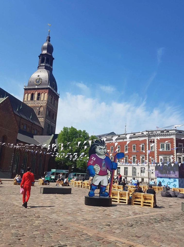 На Домской площади большой экран установали. Хокккей показывают....