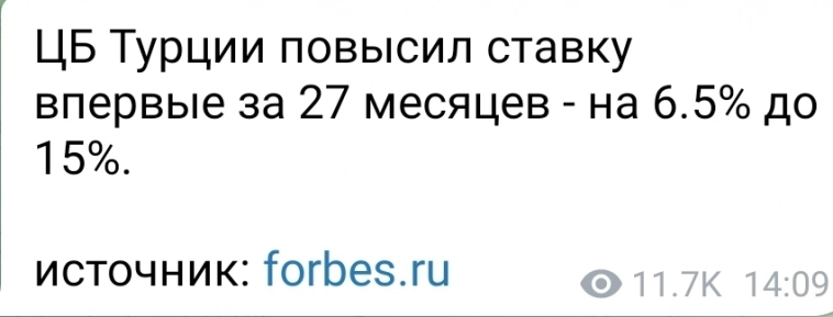 Сегодня должно состояться заседание Банка Турции, я в ожидании революции. Ждём. Итоги среды: РТС(