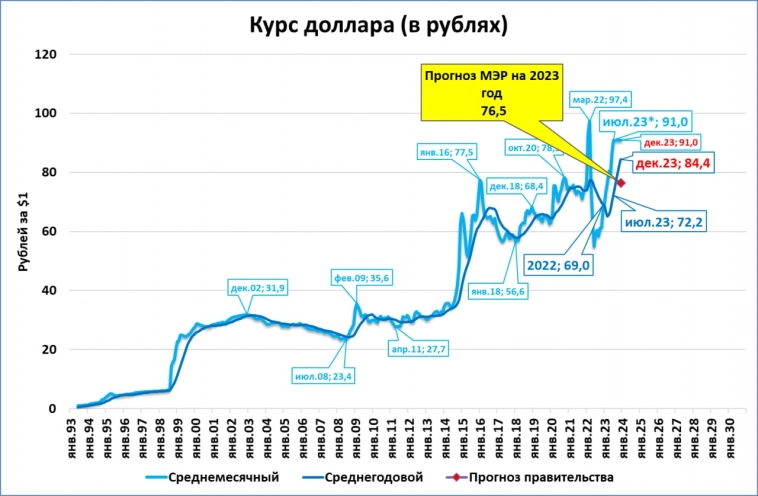 Тогда среднегодовой курс «перелетит» через прогноз МЭР и составит 84,4 рубля за доллар.