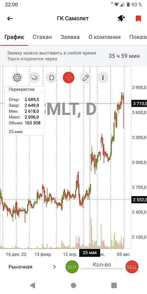 Пробовать брать понемногу. Либо на утреннем гэпе, либо на откате. Одно-два движения в день. Не жадничать, не слушать никого, как я вчера. Было +7000. Ушел в минус 4000. А почему? Сказали не надо продавать и я забыл, что я взял в 7 раз больше, поставленных целей на день. 1000 в день это 250к за год. Ну тысяча это минимум. Депо растёт и растет процент. Мне на 300к дали бы Сбера на 900к. Ну найти какую то акцию, чтобы не летала. И брать 0.3% в день. Это 3000 с 900к. Ограничить прибыль. Какой то суммой. И выходить. Можно брать вечерний задерг примерно в 17 часов… Надо поставить цель, разбить на части. Брать понемногу. Задача сдвинуться. Вернуть за год допустим 500к-700к. Нужно как то пойти в нужном направлении. Можно попробовать залезть допустим в красный октябрь и ждать, когда его дернут на 20-40%.