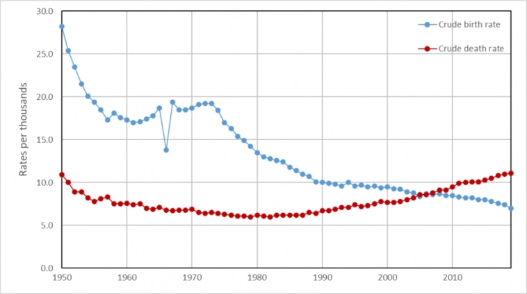За потерянное десятилетие (90е) в Японии с жутким экономическим и финансовым кризисом рождаемость упала с 10,0 до 9,5