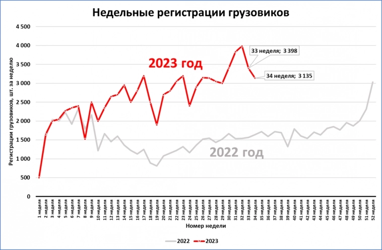 За 34 неделю по данным агентства Автостат было продано ещё 3 135 шт.