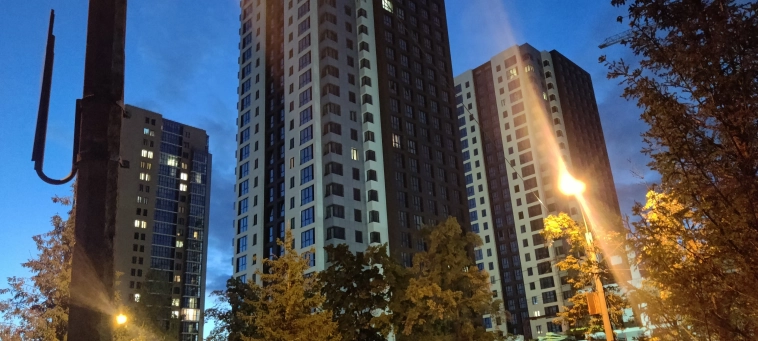 Про Челябинск. Вот пример ЖК комфорт+ класса, Лесопарковый. Две свечки спереди уже сданы давно. Судя по включенному свету продажи так и прут!