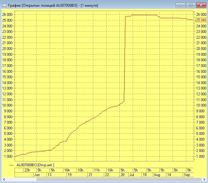 можете ли вы, если собираете не только биды/офферы но истори ОИ, сказать когда в опционах Алросы на сентябрь появился такой ОИ. на сайте я нашел только что это было одной сделкой