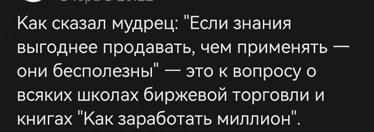 Также, я в идеале владею переводом с инфоцыганского на русский, поэтому когда вижу в одном посте «заработал миллион» и «моя телега по этой ссылке», я сразу понимаю, что курс массажа мне будет полезнее, чем курс очередного бедолаги.