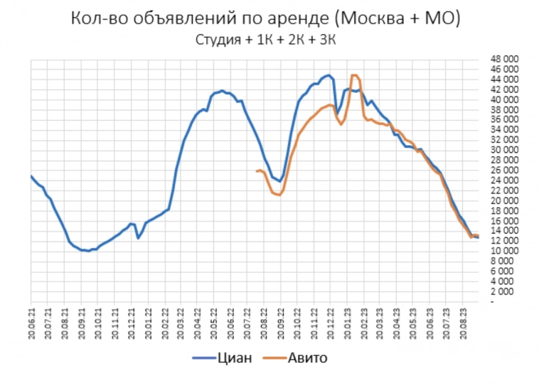 P.s. Более того скажу что кол-во лотов как в продаже так и в аренде неуклонно снижается все последние пол года (ориентироваться нужно на данные циан, т.к. на авито много фейков и дубляжей)