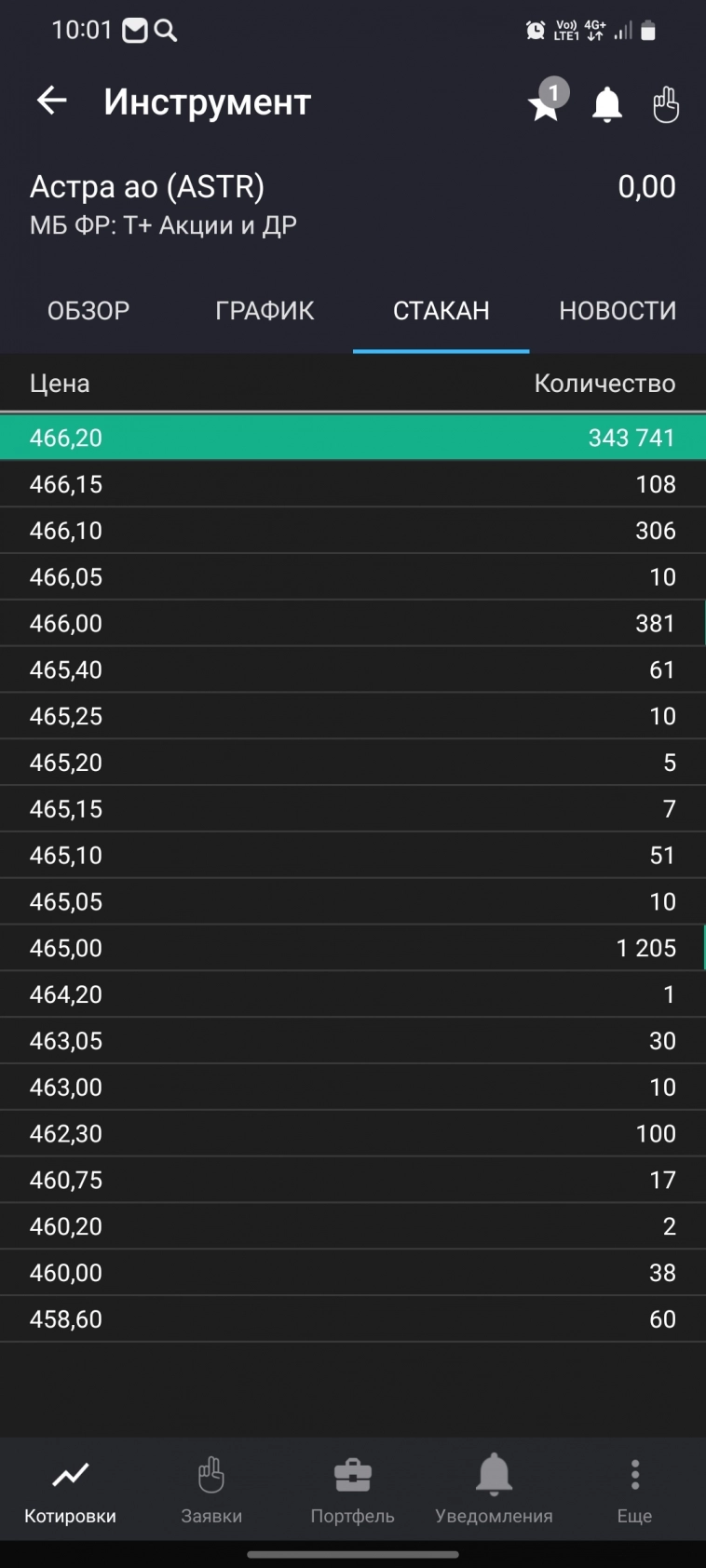 Какие-то фанатики с открытия хотят купить акции Астры по 466 рублей, на биде стоит 106 тыс акций что соответствует примерно 50 лямов.