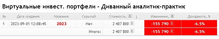 В пятницу отрицательная доходность была всего 74 тыс. и вот опять рост. Завтра будет ровно 2 месяца инвестиций и -6.5%. Что будет через год?