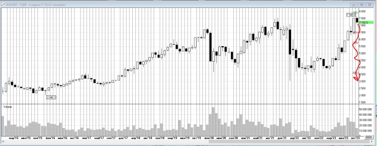14.11.2023. Вчера индекс ММВБ закрыл день ещё одним «волчком», снова отбившись от своего дневного сопротивления (на сегодня — 3254) и как под копирку повторив дневку пятницы. В случае его пробоя с ретестом, ждём продолжения роста, сперва к локальному кластерному уровню 3262, а в случае его прохода — до годовых хаёв, после чего вероятен откат или разворот. Закрепление выше годовых хаёв (или возврат после коррекции) даст основания для продолжения рота до отметки 3397, где на месячном ТФ находится последнее перед истхаями, сопротивление.