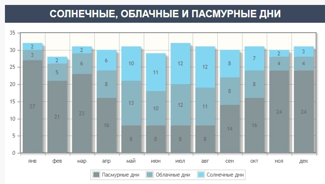 в питере 50 солнечных дней, при чем 20-25 дней выпадают на январь-март. остальное унылое зрелие