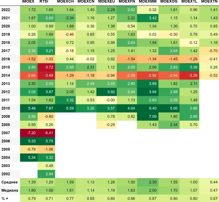 22 года из 27 лет. Причем плюсы и в минусовые годы, такие как 1998, 2008, 2011, 2017 и 2022, а минусы в плюсовые годы: 2001, 2005, 2007 и 2016. И только в 2014 минус и в первый день января и по году.