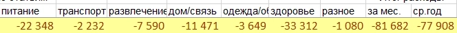 Константин Панк, неправильно посчитали, если вас расходы интересуют, то они составляют 60-80 тыс. ежемесячно, средние цифры по статьям:
