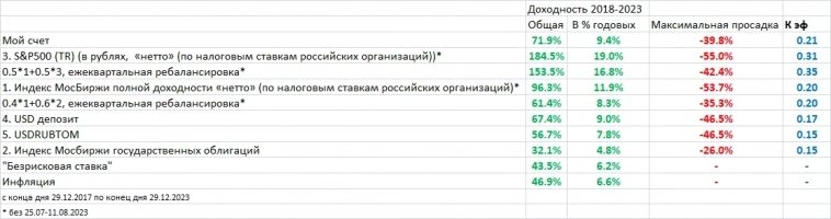 … Мы отвлеклись на долларовые инструменты. Это, кстати, уже из области другого тезиса, что такие инструменты якобы лучше. Не лучше и не хуже, я бы сказал, смотря какое блюдо вы умеете готовить. Кто-то российские акции, кто-то иностранные, но вторые сейчас, для большинства россиян, опаснее. А пассивное держание индекса легко подгоняется под любой ответ, выиграет РФ или США, зависит от периода сравнения.