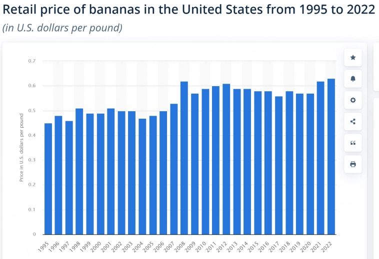 Проживая в РФ, траты в долларах, банан примерно 1,5$
