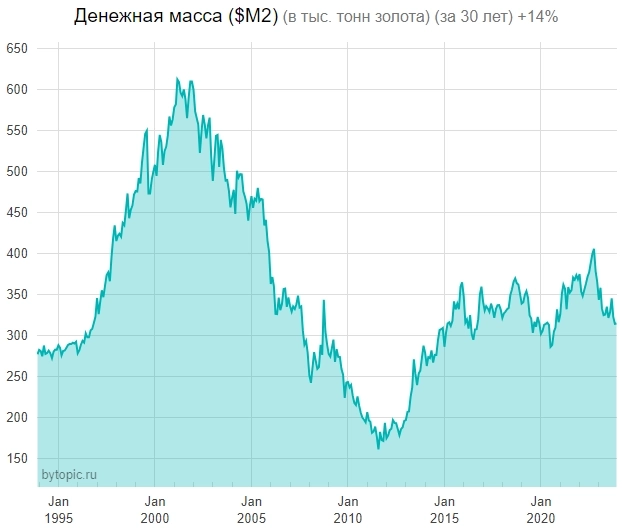 Ключевая идея его модели цен на золото состоит в том, что стоимость всего доступного инвестиционного золота пропорциональна денежной массе. Как ни странно, одного этого предположения достаточно, чтобы разумно исследовать возможный диапазон цен.