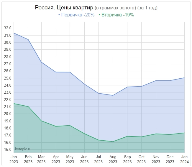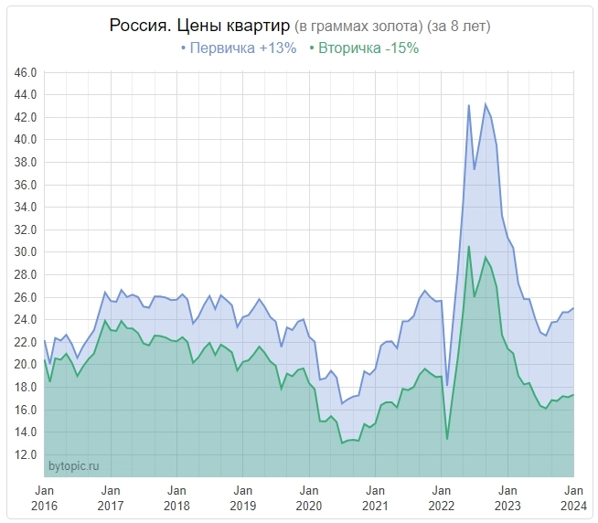 за последние 8 лет российские квартиры в настоящих деньгах (в золоте) дешевеют — bytopic.ru/chart.aspx?a=real_russia&d=max&u=gold