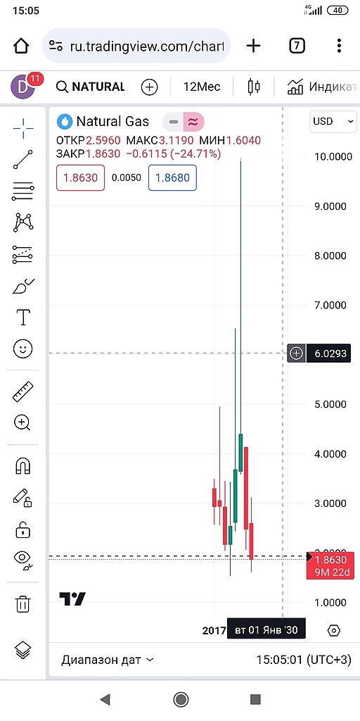 Дмитрий Первый, газ он такой непредсказуемый штоли… вот давеча падали все кричали тренд-тренд, щас единицу пробьем, а он на полтора развернули, потом парадигма изменилась все ждали 2.1, а он вниз сквозанул. на 1.65 сходит. может запилить на пару дней 1.750- 1850, но думаю нет.