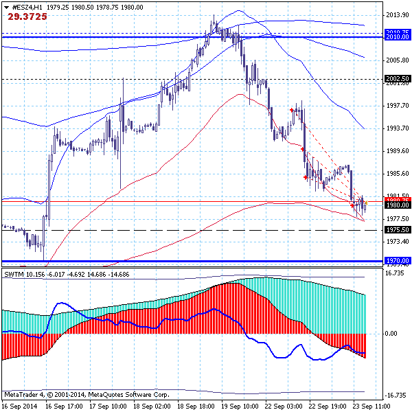 Рекомендуется удерживать позиции на продажу, открытые по нашим предыдущим рекомендациям. Можно пополнить объем продаж на откате в зоне 1992/95 или по признакам завершения отката и восстановления нисходящего движения.