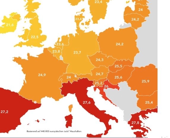 "Интересно также взглянуть на наших соседей: швейцарцы любят уютную и теплую 21,5 ºC в своем доме, а австрийцы даже 21,7 ºC. Это ставит их выше среднего показателя по Германии, составляющего 20,9 ºC"