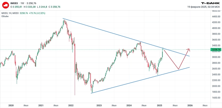 Индекс мосбиржи оттолкнулся от сопротивления и смотрит вниз