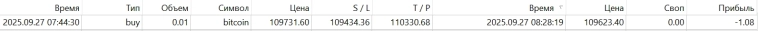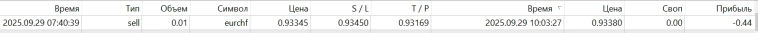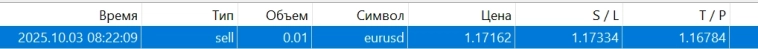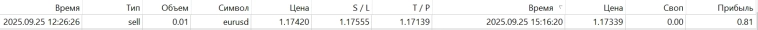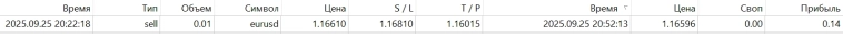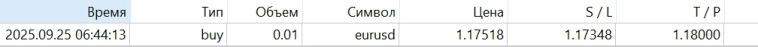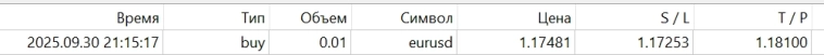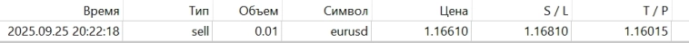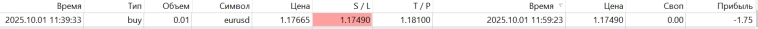 EURUSD, 24.09.25 11.35 (мск), H1, Красная линия — сработавший стоп-лосс (- 300 пунктов)