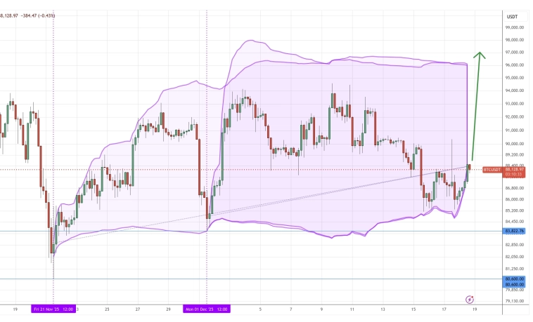 Есть небольшой риск в 17:30+- полетать. А через 96 свечей обратно.