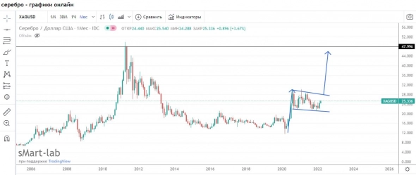 Александр Москвин, серебро похоже тоже на ближайшие месяцы нехило лупанёт. Предыдущие горизонты не дадут многим покоя пока наконец серебро рано или поздно снова не придет на те самые исторические высоты.