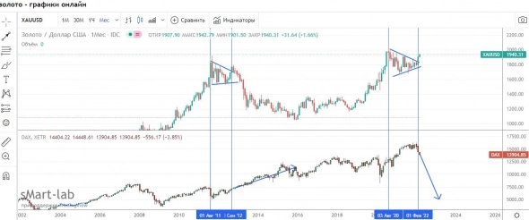 SEREGA, на индексе дакса могут сейчас на отскоке дохлой кошки изображать хорошую мину при плохой игре типа всё нормально но часики уже тикают и как только перестанет ломаться на уровне пробоя и полетит вниз, золото взлетит ракетой.
